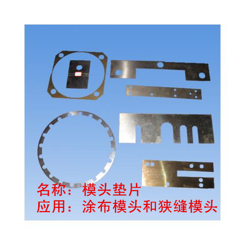 刮板墊片又名:模頭墊片、狹縫墊片、雙向拉開(kāi)模頭墊片、自動(dòng)模頭墊片、窄縫涂布模頭墊片、涂覆淋膜模頭墊片、曝光機(jī)刮板墊片等等。刮板墊片用途:刮板墊片廣泛應(yīng)用于紙張和薄膜等基材的涂布及復(fù)合包裝機(jī)械的涂布模頭。依靠精密刮板墊片可以生產(chǎn)出非常薄的涂層以及透明的光學(xué)涂層,同時(shí)可使涂層量保持在非常公差范圍內(nèi),可在涂層厚度只有0.002mm 或者是2μm 的情況下,將整個(gè)寬度上的涂層量控制在5% 左右的公差變化范圍內(nèi)。一般的模頭模唇是固定的,因此可以利用可換的刮板墊片來(lái)改變涂層的厚度和寬度。涂布量從不足1μm 到254μm 的涂層厚度。該類(lèi)模頭可加工各種類(lèi)型的膠粘劑(包括特殊的透明膠粘劑)、電池、陶瓷電容器、裝飾表面、電子顯示介質(zhì)、過(guò)濾膜、地板、燃料電池、磁性泥漿、醫(yī)療產(chǎn)品、光阻材料、壓敏膠帶、太陽(yáng)能電池、導(dǎo)體、撕帶和窗用薄膜等。