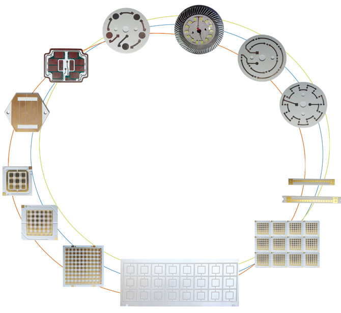 陶瓷覆銅板主要應用于大功率LED芯片的Chip封裝或小功率多芯片集成工藝的COB模塊封裝。 |